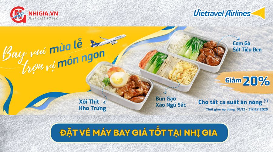 Còn chần chừ gì nữa? Hãy lên kế hoạch cho chuyến đi tháng 12 và đặt ngay suất ăn nóng với giá ưu đãi 20% để trải nghiệm ẩm thực trên không cùng Vietravel Airlines!