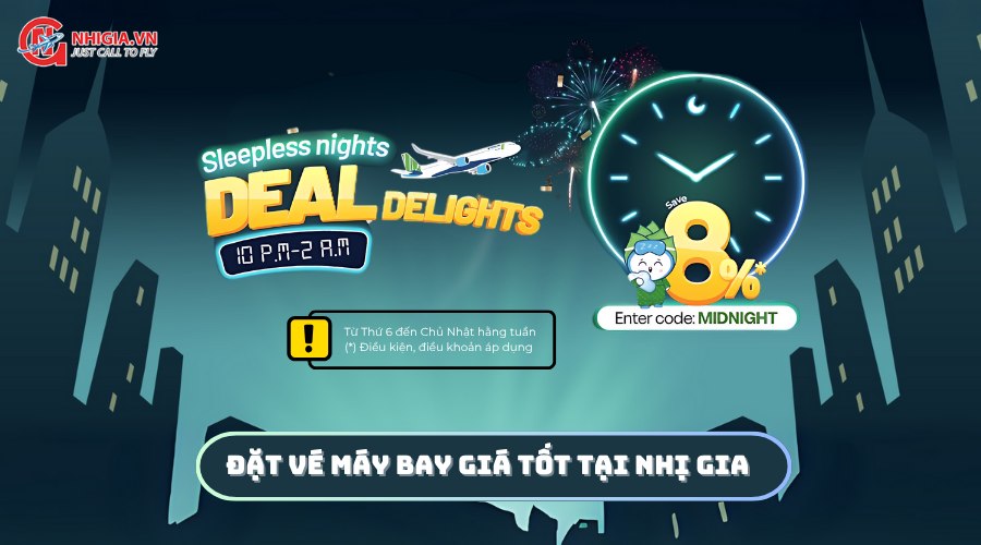 Đừng ngủ quên bạn nhé! Ưu đãi chỉ diễn ra trong khung giờ 10:00 PM – 02:00 AM từ Thứ Sáu đến Chủ Nhật hàng tuần. Nhanh tay đặt vé máy bay vì số lượng mã ưu đãi có hạn!