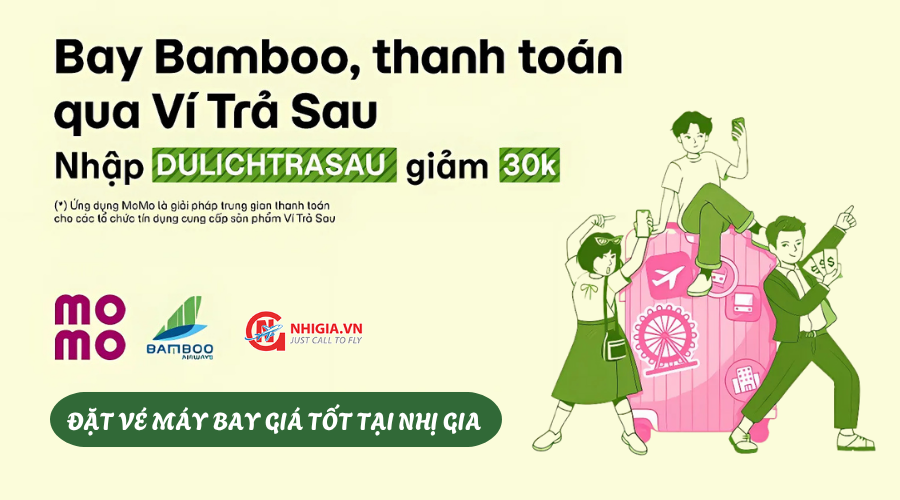 Săn vé máy bay Bamboo Airways giá tốt, nhận ngay mã giảm 30.000 VNĐ khi thanh toán bằng ví trả sau Momo. Liên hệ Vemaybaygiatot để được hỗ trợ đặt vé nhanh nhất!